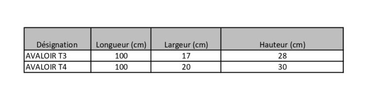 Bordure Avaloir Fiches techniques Avaloir T3 Avaloir T4 Autres produits Bordures Type T Bordures Type P/CR Bordures Type A Bordures Type F